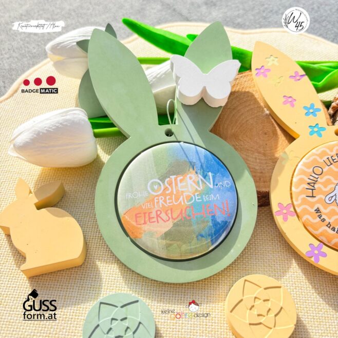 Mit unseren Buttonformen kannst du deine Kreativität frei entfalten und DEIN ganz eigenes, individuelles Osterprojekt starten.