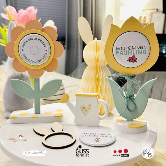 Und sie sind auch noch richtig schnell und einfach herzustellen. Vor allem mit der richtigen Maschine. Wir haben für unsere Buttons die Flexi von *Badgematic verwendet.