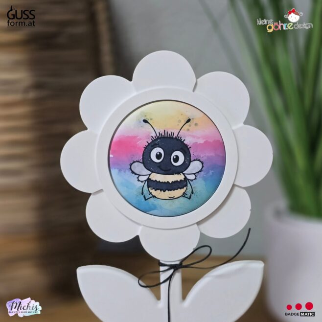 Und sie sind auch noch richtig schnell und einfach herzustellen. Vor allem mit der richtigen Maschine. Wir haben für unsere Buttons die Flexi von *Badgematic verwendet.