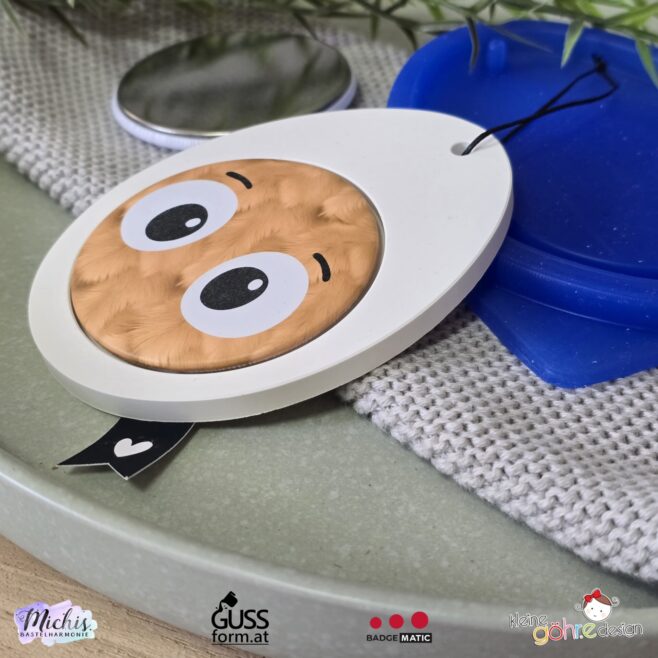 Silikonform Ei für 59er Buttons mit Loch zum Aufhängen