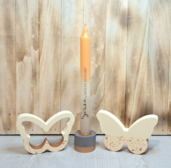 Die fertig gegossenen Schmetterlinge sowie sämtliche Dekorationsobjekte auf den Bildern sind beim Kauf nicht enthalten.