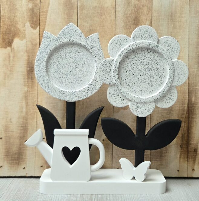 Die Löcher in den Sockeln sind genau auf die Stängel der Buttonblumen angepasst.